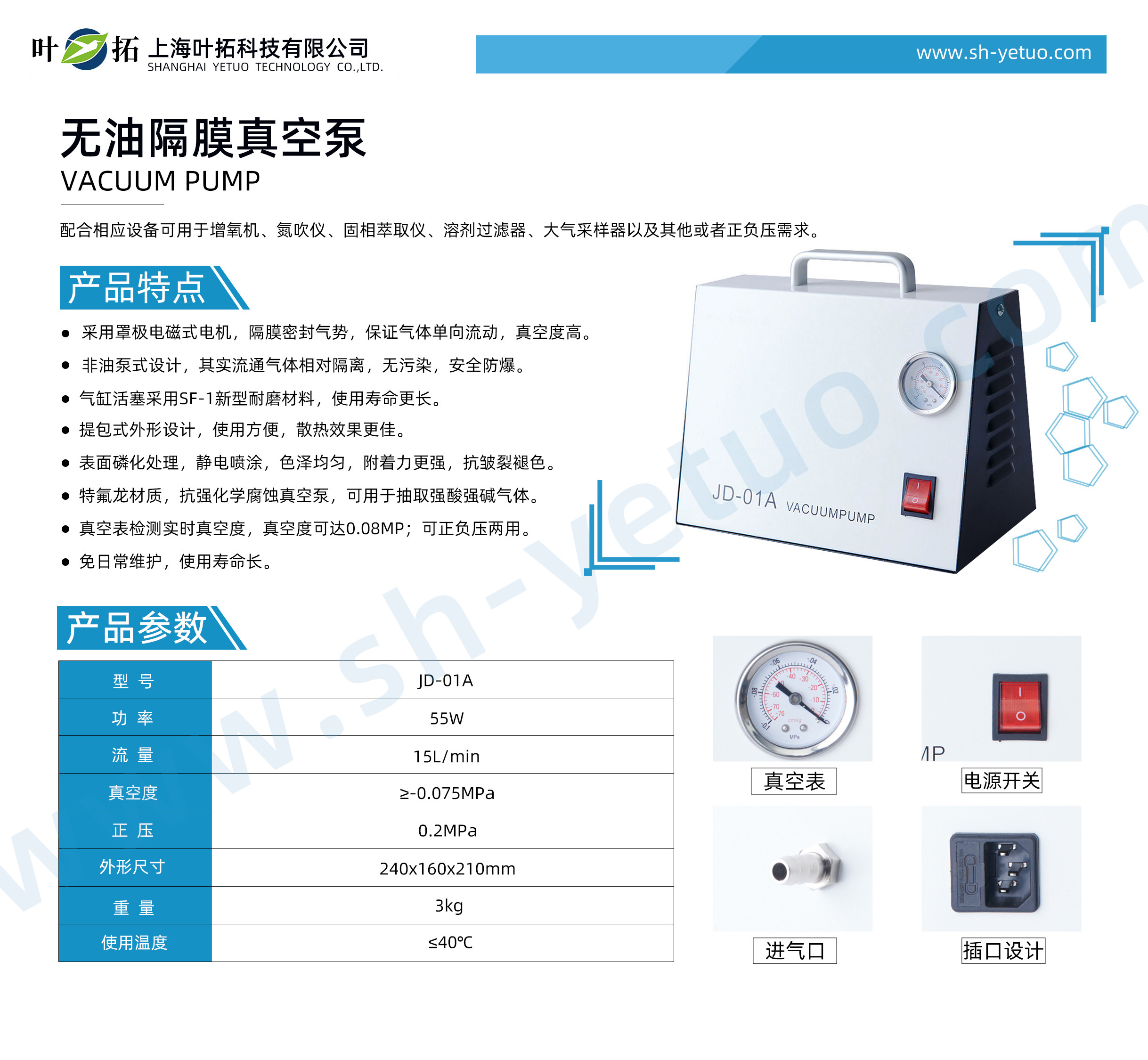 葉拓 JD-01A 無油真空泵詳細參數