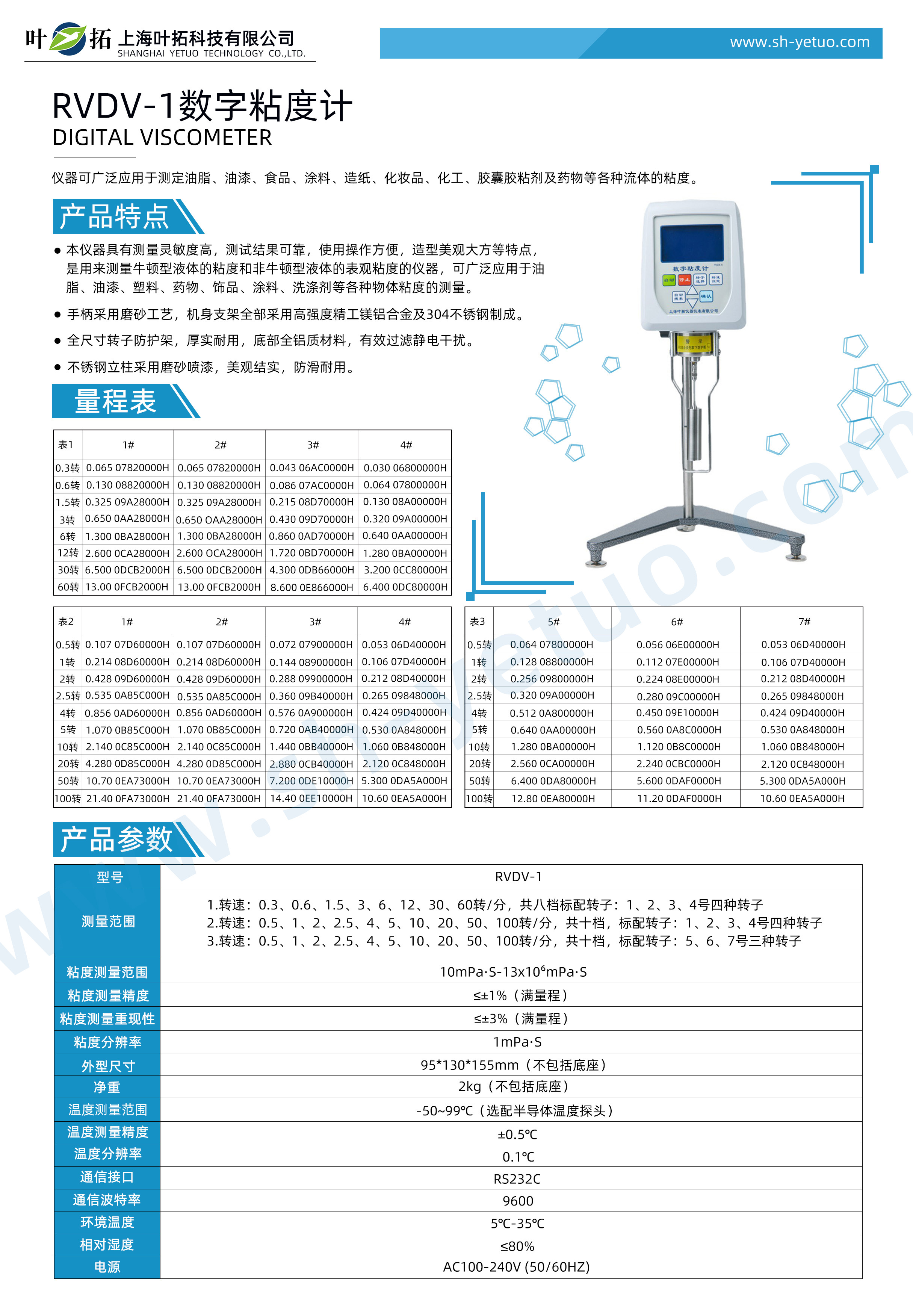 葉拓 RVDV-1 數顯旋轉粘度計詳細參數