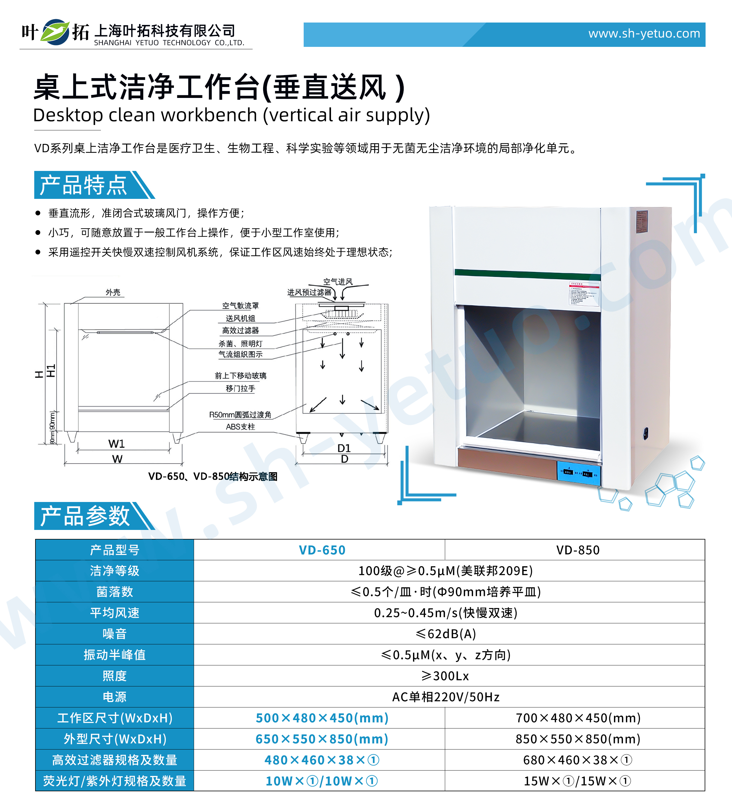 葉拓 VD-650 桌上式垂直送風潔凈工作臺詳細參數