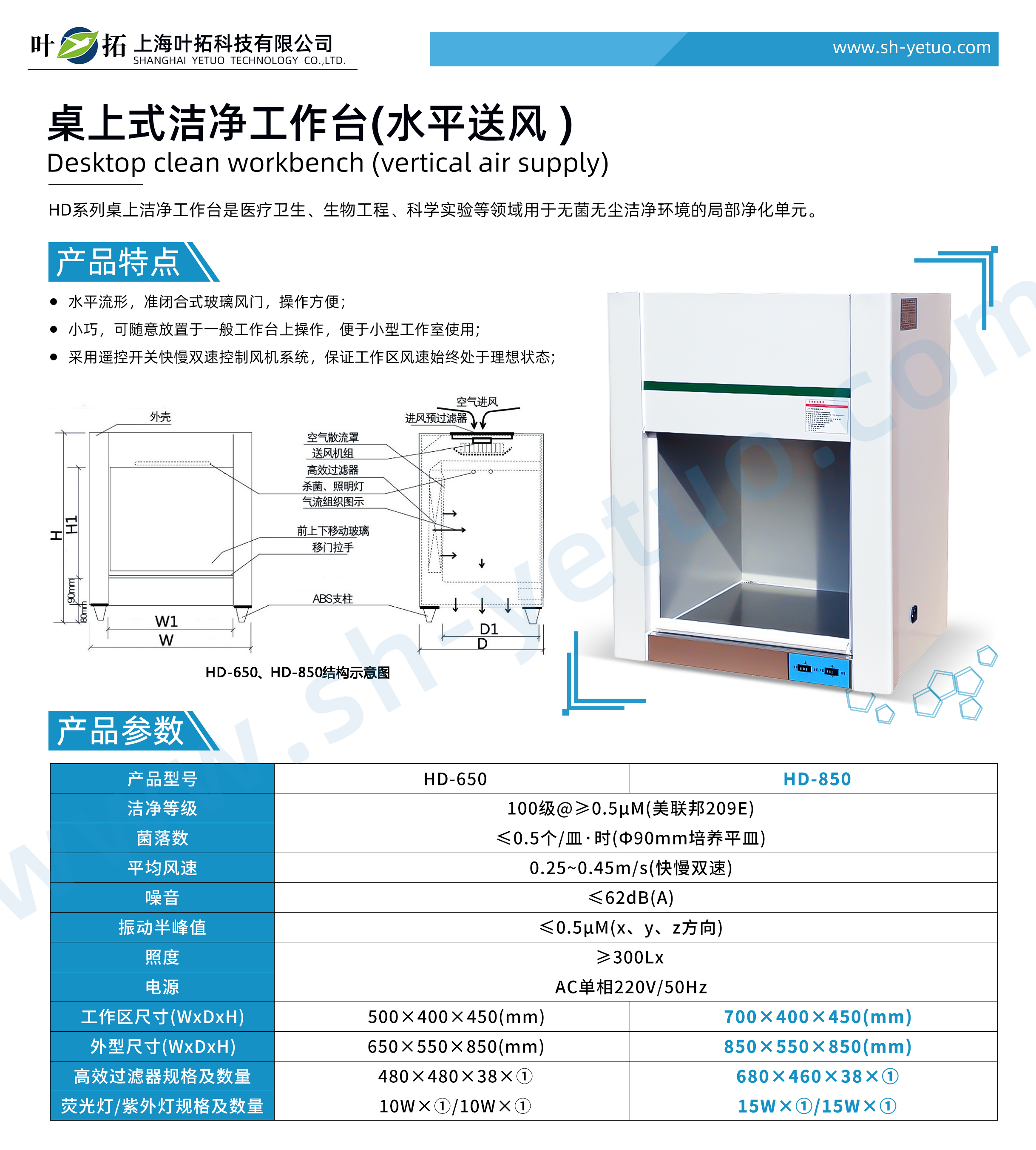 葉拓 HD-850 桌上式潔凈工作臺(tái)(水平送風(fēng))產(chǎn)品特點(diǎn)