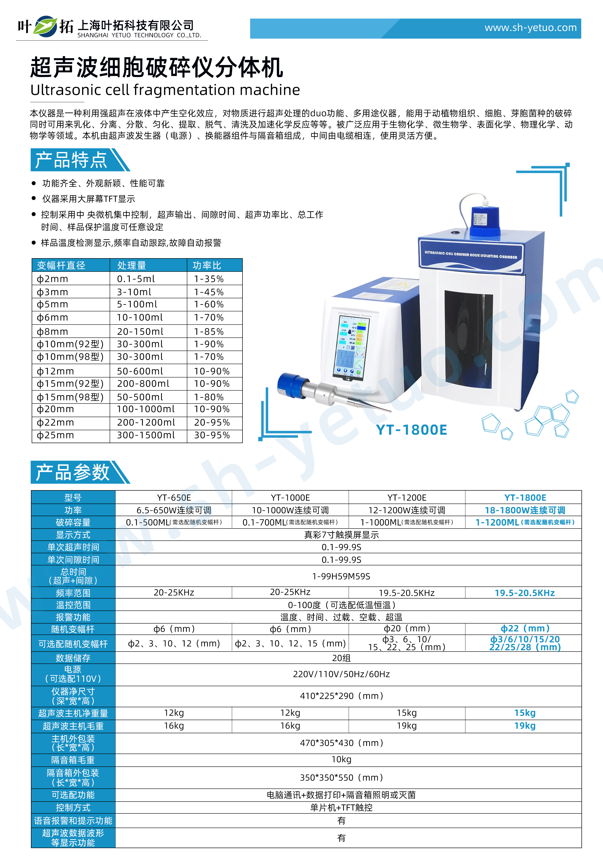 葉拓 YT-1800E 分體式超聲波細(xì)胞破碎儀彩頁(yè)