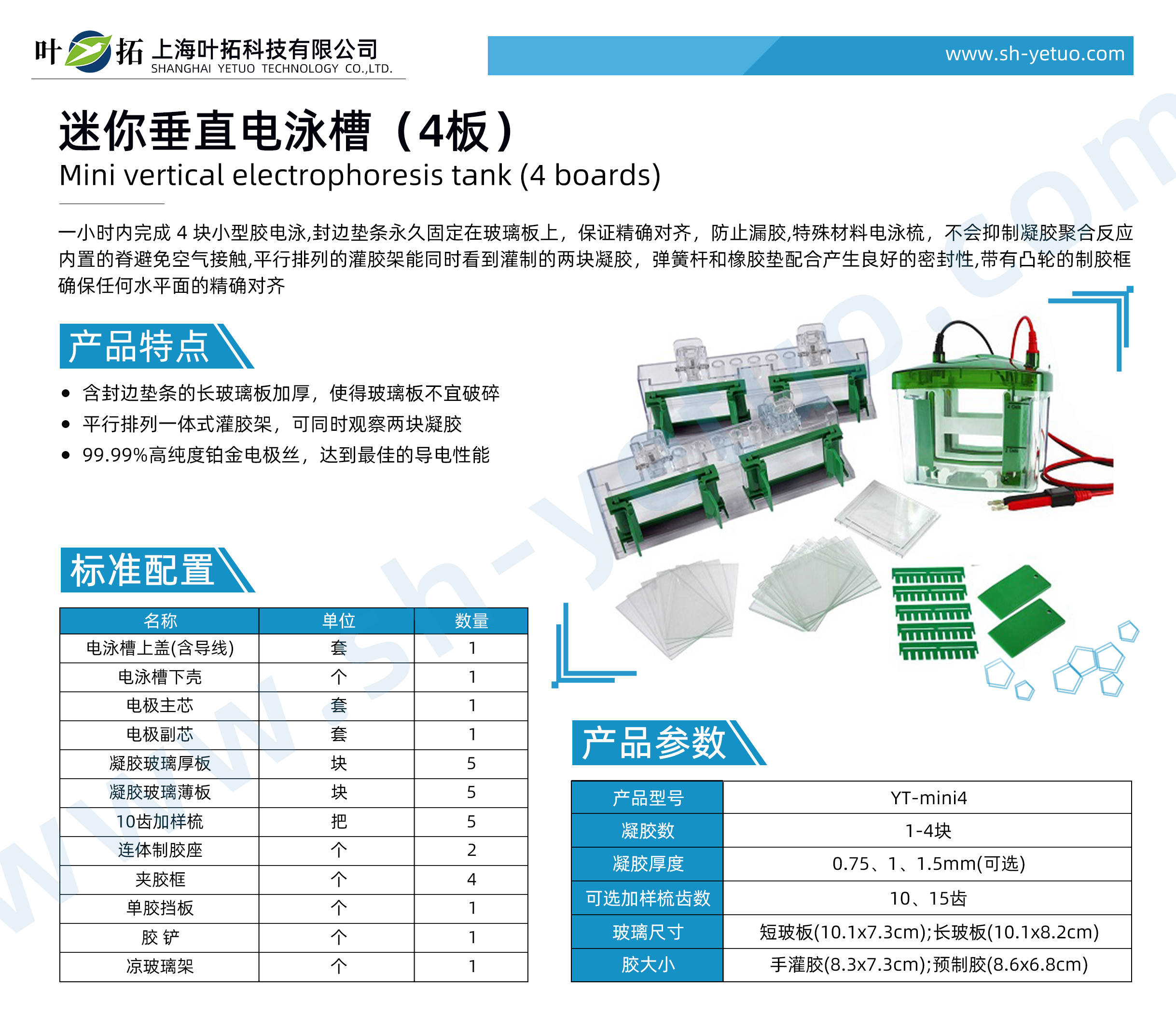 葉拓 YT-mini4 迷你垂直電泳槽詳細參數