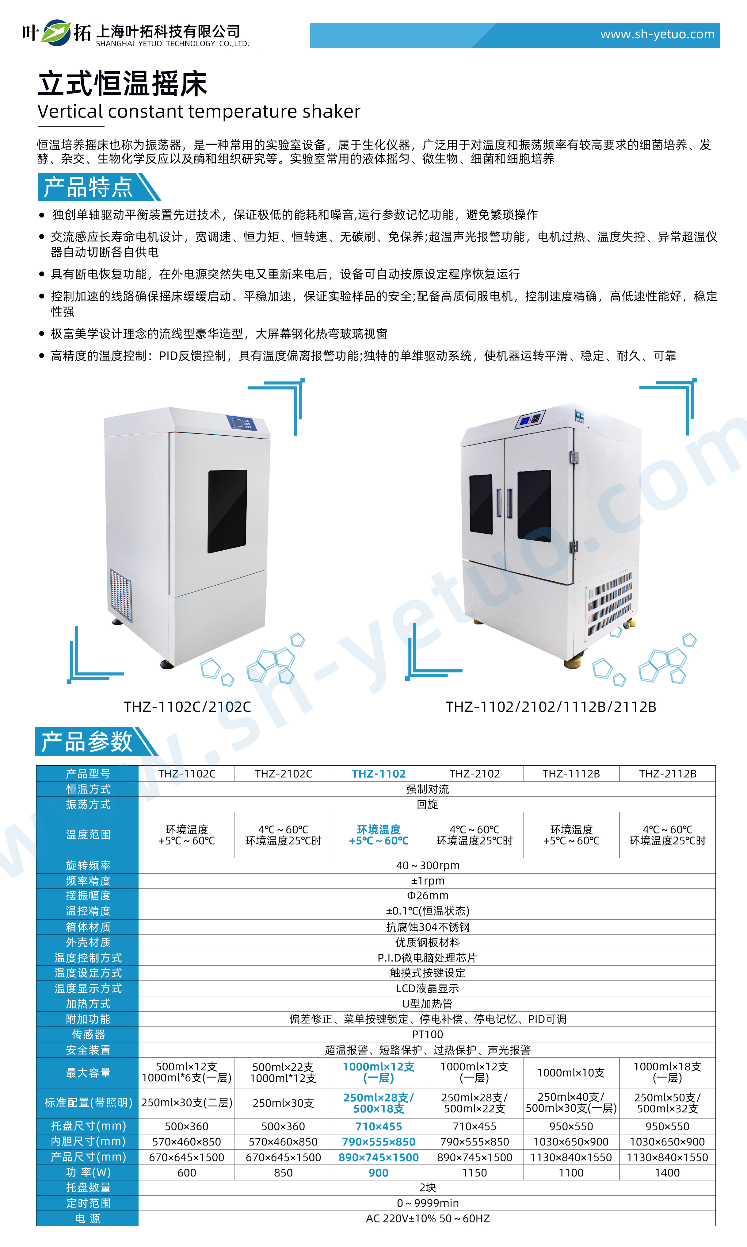 葉拓 THZ-1102 立式恒溫搖床詳細參數