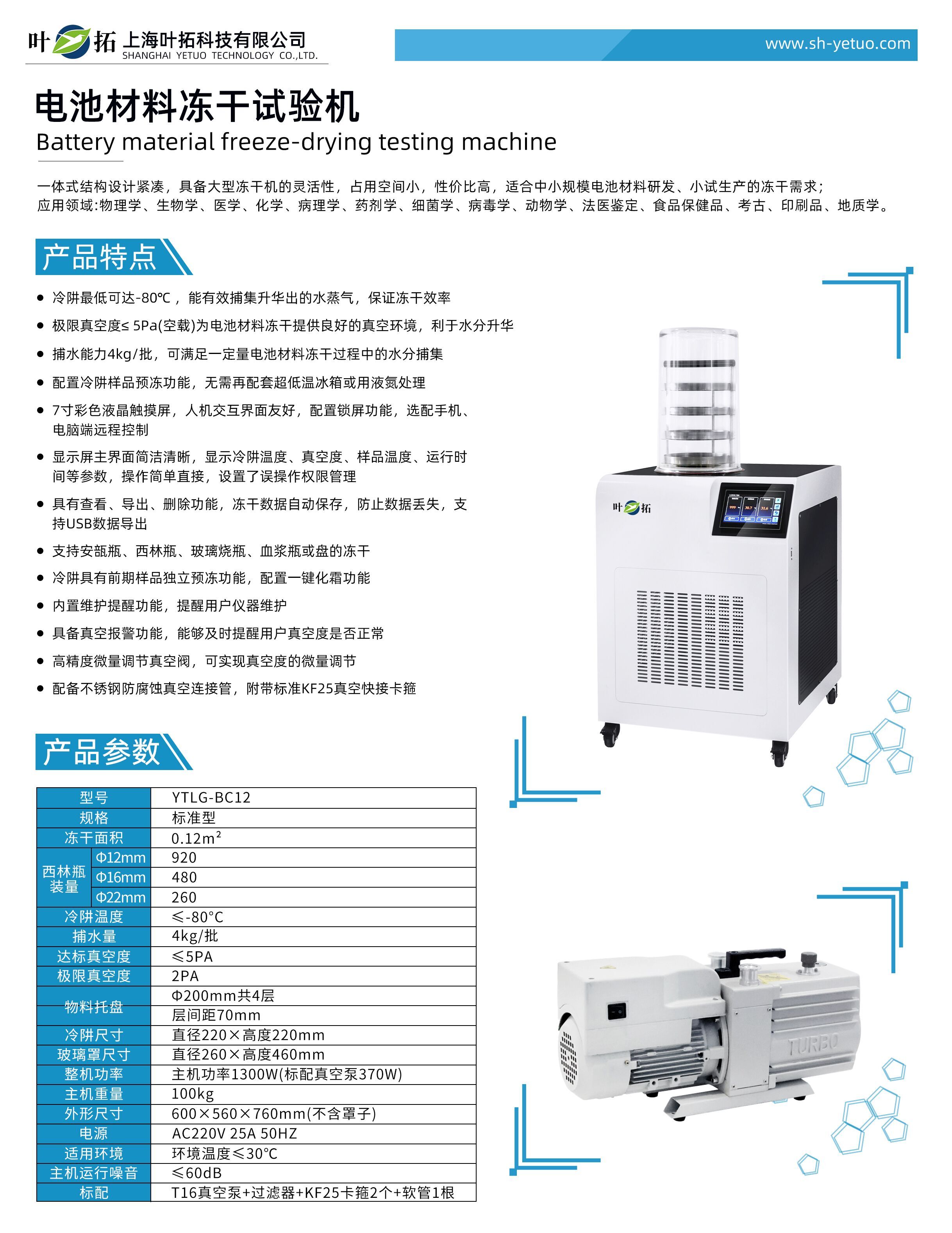 葉拓 YTLG-BC12 電池材料凍干試驗機詳細參數(shù)
