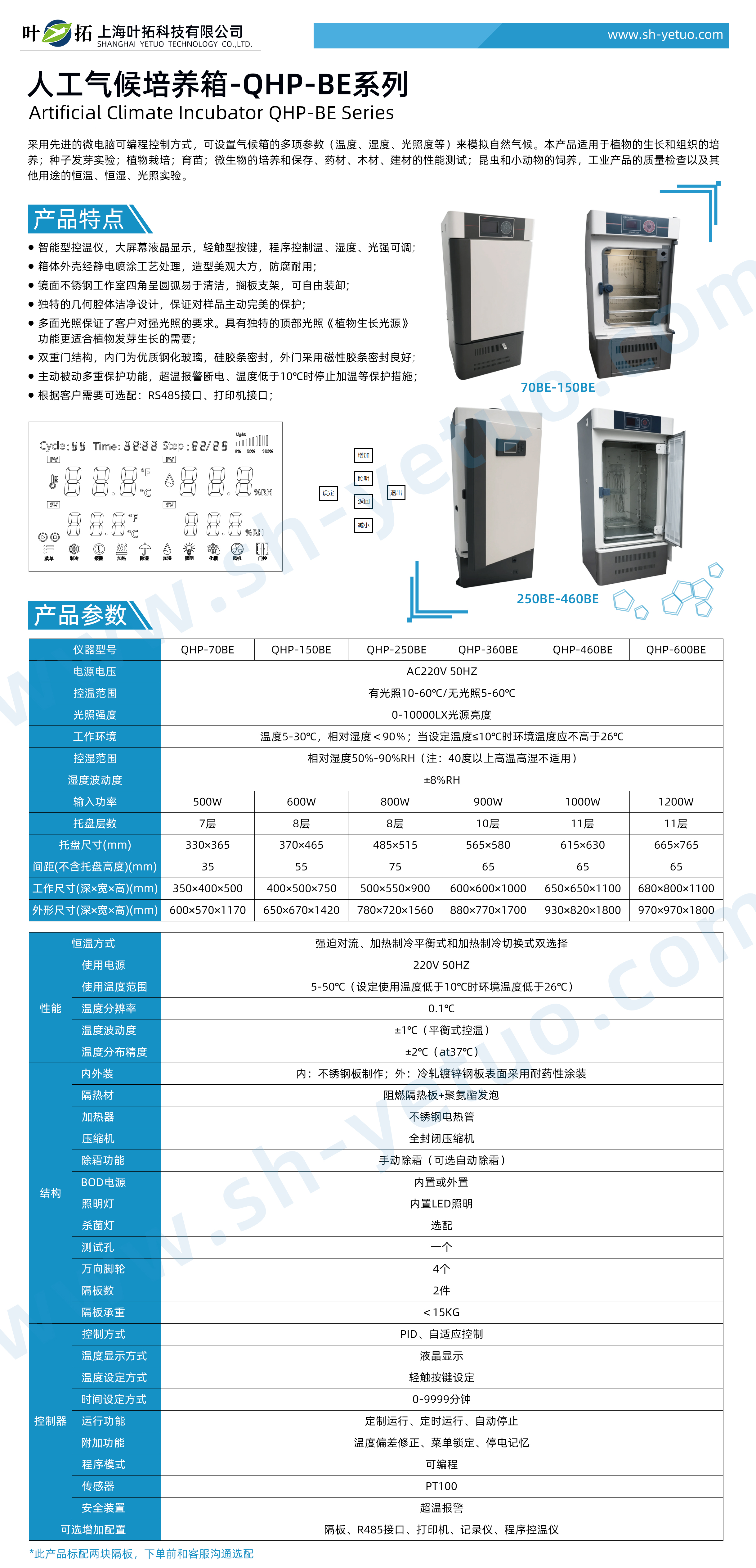 葉拓 QHP-70BE 人工氣候培養(yǎng)箱詳細參數(shù)